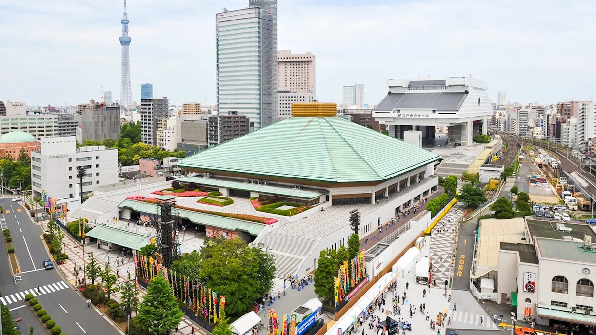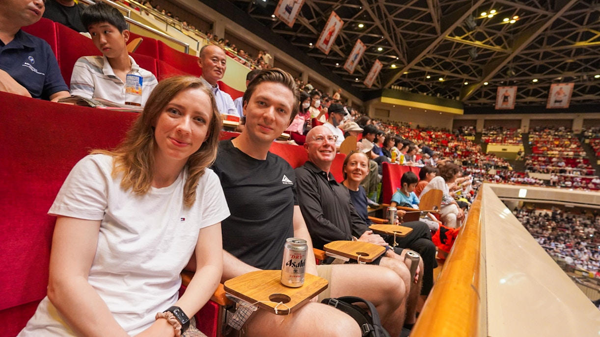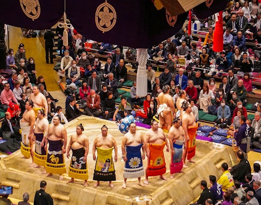 Machen Sie es sich auf Ihrem reservierten Sitzplatz bequem und genießen Sie die Aussicht auf das Sumo-Turnier, während Ihr Reiseleiter Ihnen die Bräuche und Rituale erklärt.