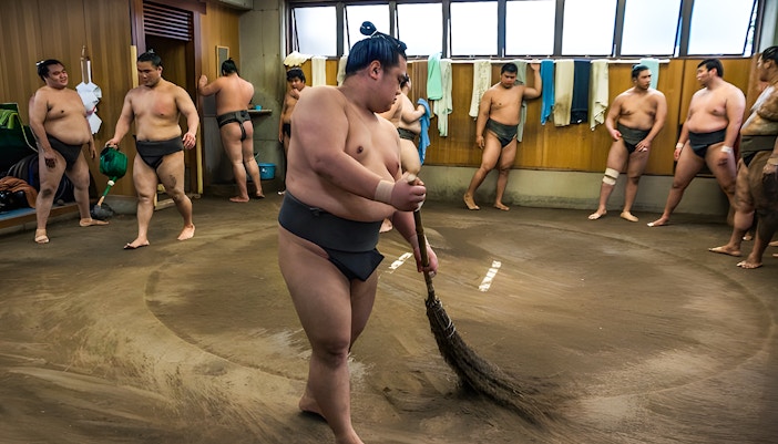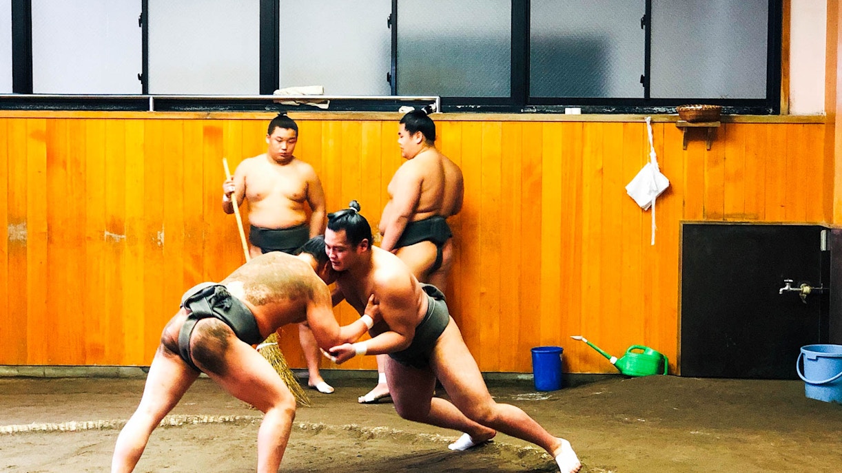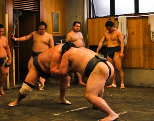 Lernen Sie die Sumo-Kultur bei einem Besuch in einem Sumo-Stall kennen, wo Sie am Morgentraining teilnehmen, die Ringer im Ring treffen und gemeinsam zu Mittag essen.