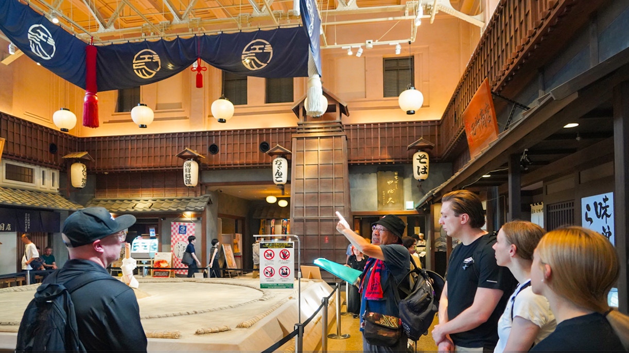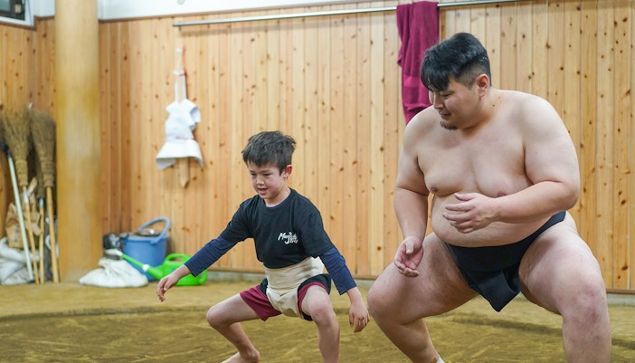 Versuchen Sie sich im Wrestling mit professionellen Ex-Sumo-Ringern und genießen Sie ein traditionelles japanisches Mittagessen.