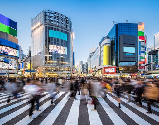 Conduce por la intersección más famosa de Tokio, donde las multitudes se mueven en todas direcciones bajo deslumbrantes luces de neón y gigantescas pantallas digitales.