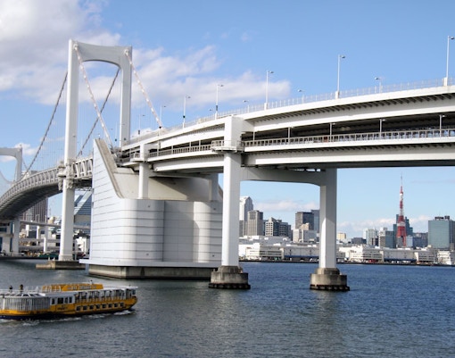 Puente Arco Iris y Bahía de Tokio: 120 minutos de karting con STREET KART | Puente del Arco Iris → Torre de Tokio → Odaiba | recorrido en karts de 120 minutos, alquiler de trajes y accesorios, guía en inglés o japonés, instrucciones de seguridad, taquilla para las pertenencias, alquiler de cámara de acción y oportunidades de hacer fotos | Aficionados a las vistas panorámicas de la bahía y a las tomas panorámicas de puentes |