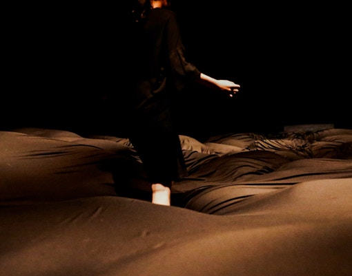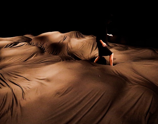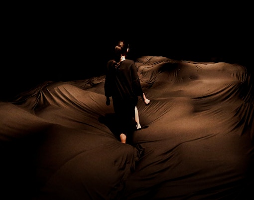 A sala é pouco iluminada e repleta de montes esponjosos que cedem ao peso dos pés ou do corpo. As sombras e a suavidade se combinam para criar uma paisagem surreal onde você recalibra seus sentidos a cada passo instável.