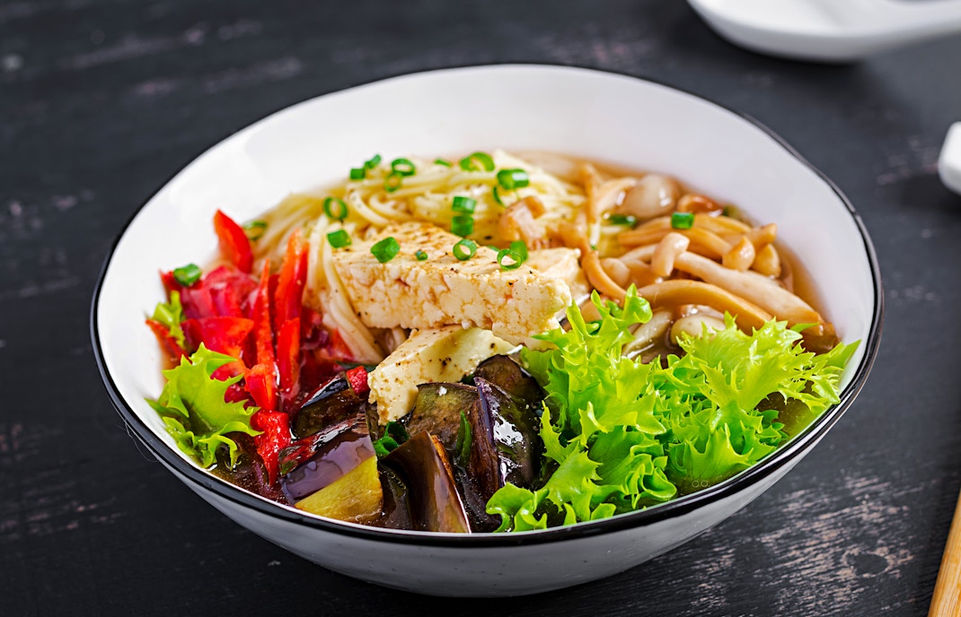 Um restaurante de ramen vegano que oferece experiências gastronômicas imersivas cercadas por projeções digitais do teamLab Planets.