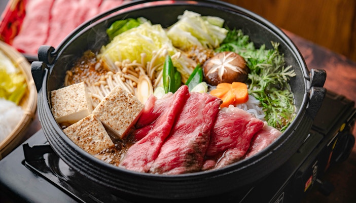 Você pode saborear uma tigela de ramen quente e fumegante na tenda ou sob as cerejeiras Wisteria. Se você quiser ampliar sua exploração artística, vá até a Emptiness Table, onde projeções digitais coloridas o cercam enquanto você saboreia seu ramen.