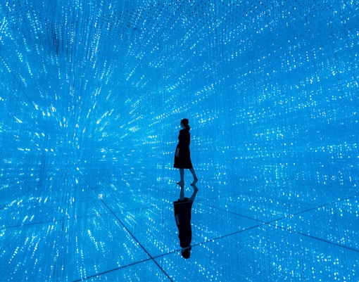 This captivating exhibition envelops visitors in a dazzling matrix of light. Dynamic points of illumination give the illusion of an infinite universe.