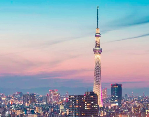 Path: Tembo Galleria sunset → Solamachi rooftop dinner → Sumida River night walk