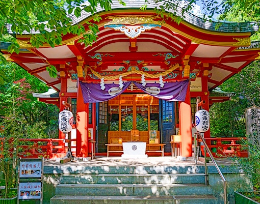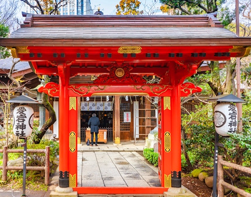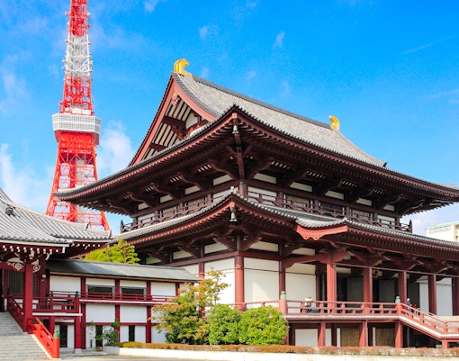 A tranquil Edo-period shrine known for its ornate carvings and peaceful setting, tucked away inside Shiba Park.