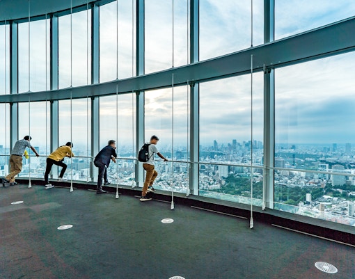 Open-air rooftop deck offering 360-degree city views, including Tokyo Tower (and Mt. Fuji on clear days).