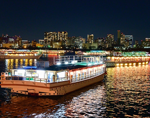 Sail through Tokyo’s glittering skyline on a night cruise, passing landmarks like Rainbow Bridge and Odaiba.